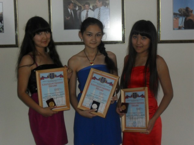 Выпуск 2016 года: Канатова Элина и Меликова Аделина - золотая медаль "За особые успехи в учении"; Бекбусинова Диана и Иконникова Анастасия - серебряная медаль "За особые успехи в учении". | ||||||